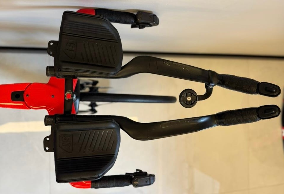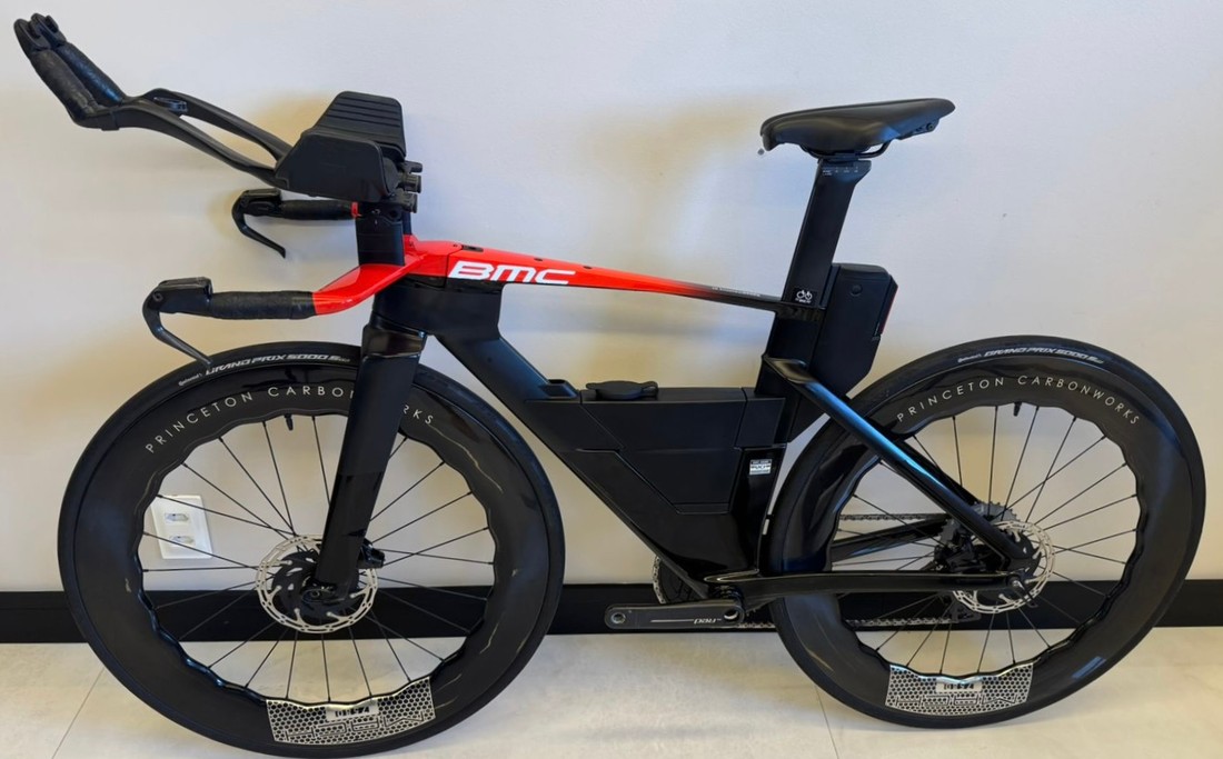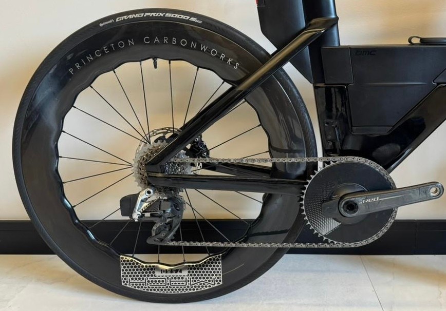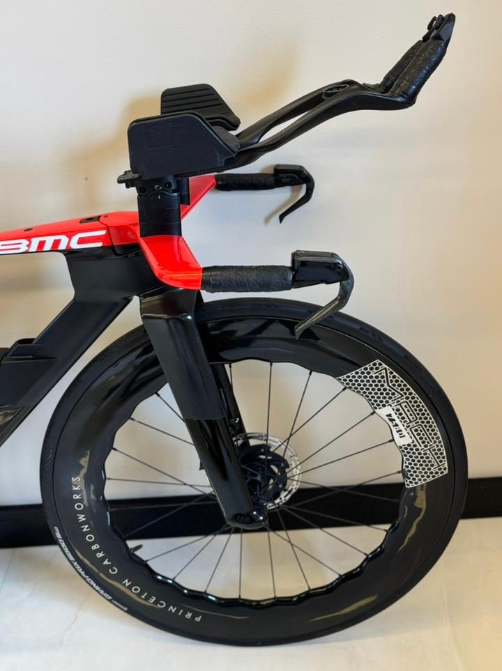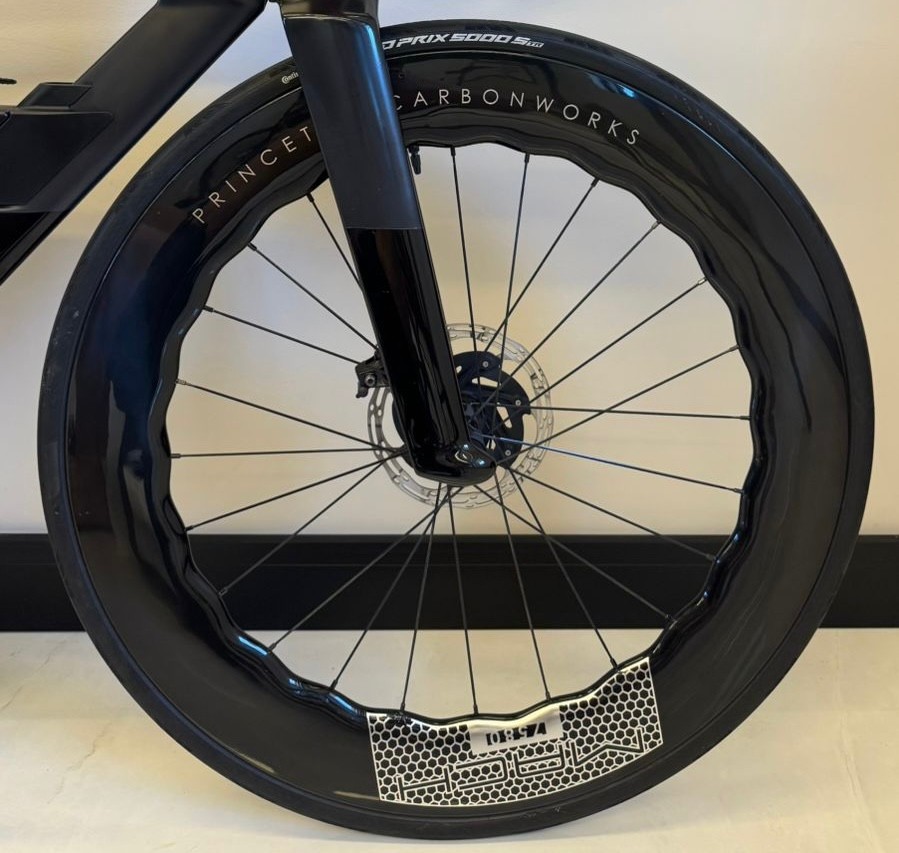 Tamanho S (até 1,74 de altura), ano 2024, grupo Sram Red AXS, 12 velocidades, medidor de potência Quarq, rodas carbono Princeton Mach 7580.