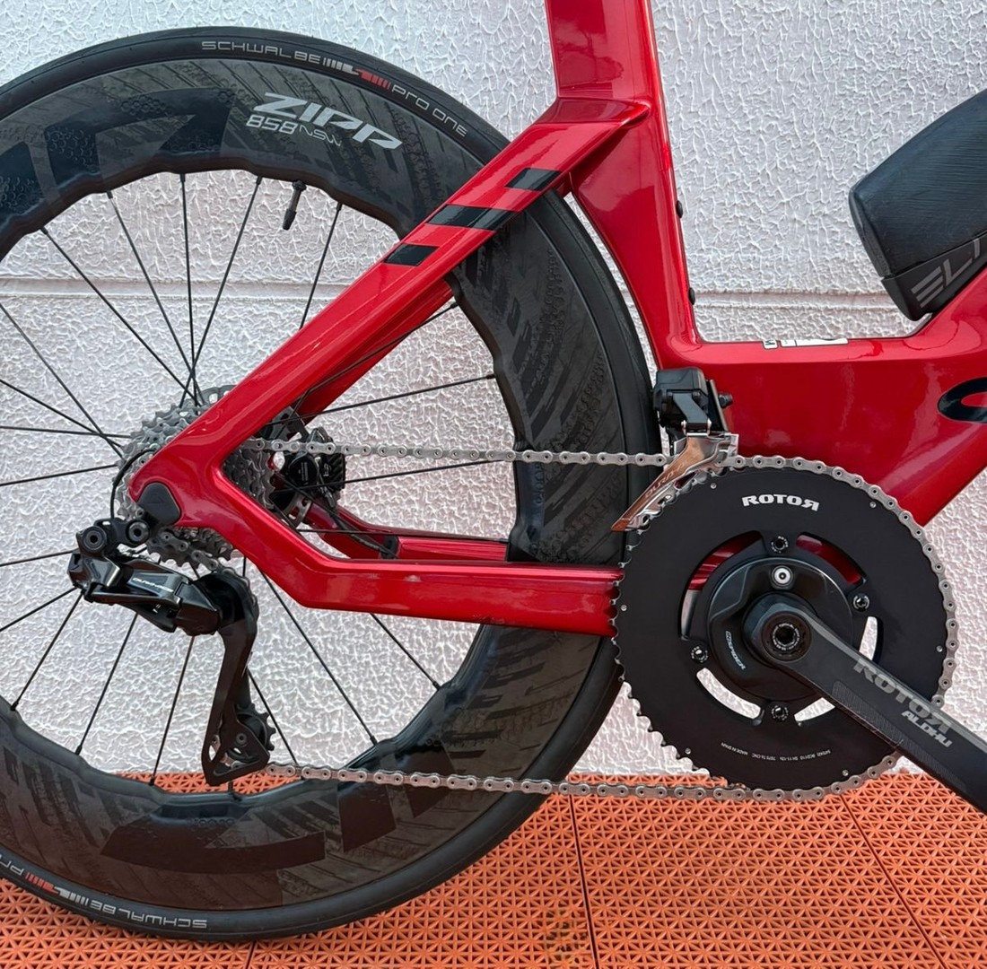 Tamanho M (altura de 1,78 a 1,86), ano 2024, grupo Shimano Dura Ace Di2, 12 velocidades, medidor de potência, rodas carbono Zipp NSW 858. Não acompanha pedal e acessórios.
